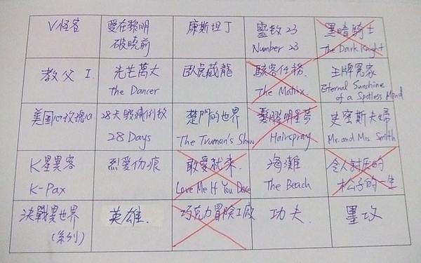 短片、非商業片、影展片、記錄片也不列入賓果盤中...